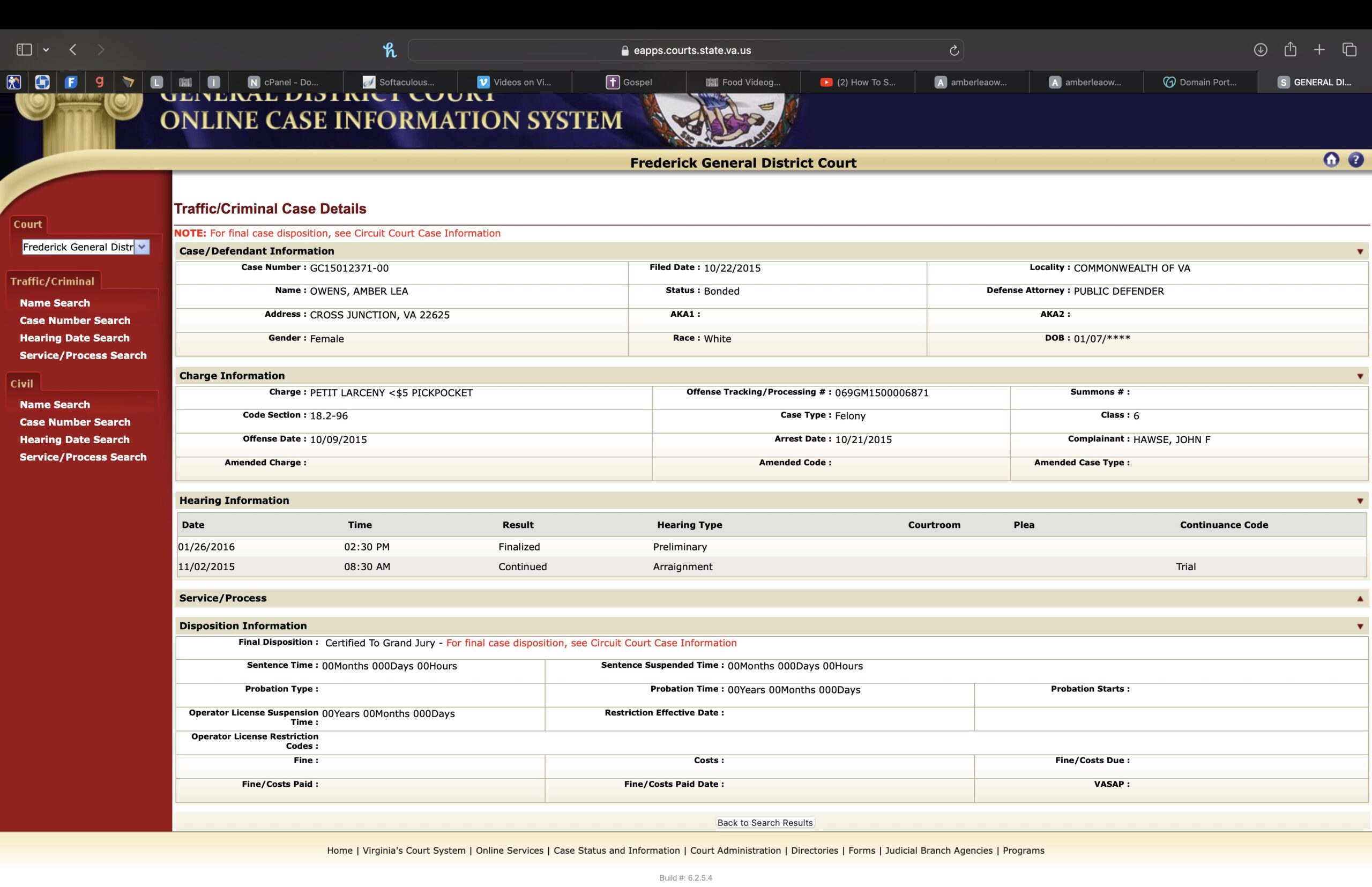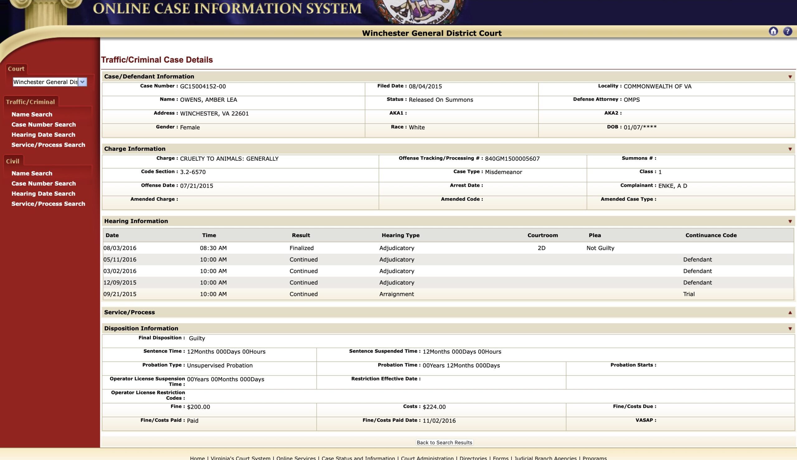 She did a full criminal background check on me before we started dating (which came up clean), and I wish I had done the same to her. If I had, I would have found an extensive wrap sheet – including arrests for Destruction of Property (similar to what I’m facing now with her refusing to return $750 worth of my belongings), Assault Charges, Felony Theft, and multiple Animal Cruelty charges.